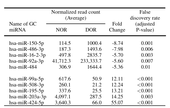 经过10年的临床研究,吴医生成功找到了卵巢早衰人群和正常人群的分子表达差异,并成功的定位到了10个特异性microRNA(命名为卵巢早衰因子),吴医生发现有五类生物分子的表达量提高了5-9倍,另外五类的生物分子下降了12-55倍不等。这些生物分子的表达失控,可能是造成卵巢早衰的罪魁祸首。